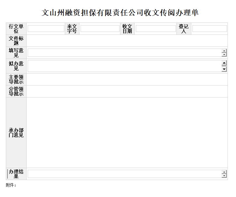 <h1>文山州融资担保有限责任公司收文传阅办理单</h1>
